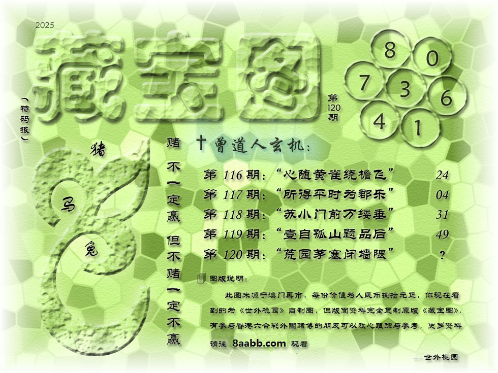 122期藏寶圖 新:割鲜籍草酒淋漓 老:日暮沙场飞作灰 禁:猴 禁:0尾 玄機字:《将》
